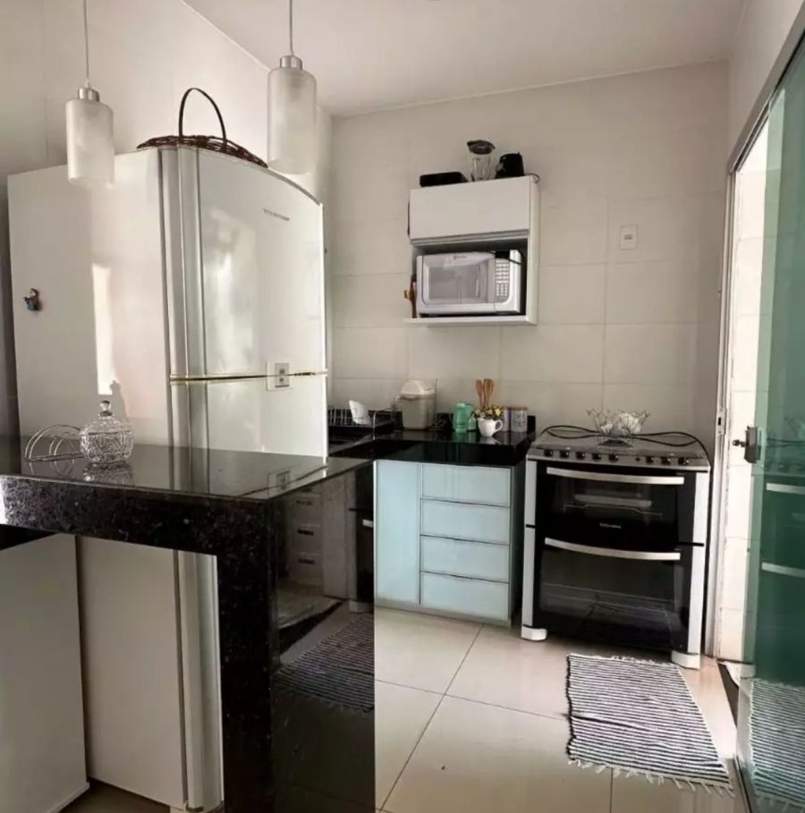 O acabamento em porcelanato, pias e bancadas em granito reforça o padrão de qualidade do imóvel.