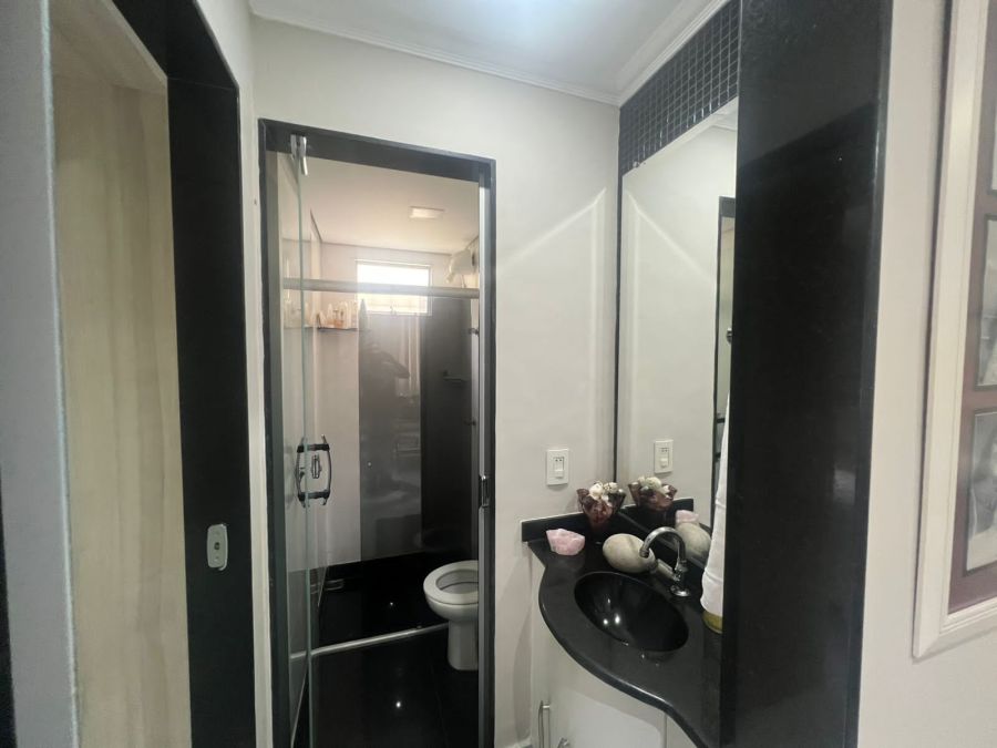 Banheiro com box em Blindex e armários